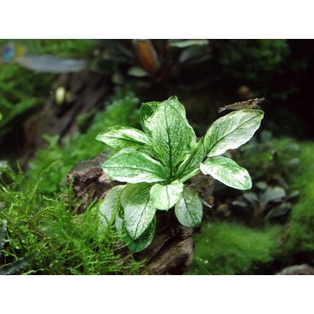Originaria del Congo L'Anubias barteri nana varietà pinto, è una pianta facile a crescita lenta, raggiunge un'altezza di 10- 15 cm. Non necessita di impianti co2 ed è sufficiente un'illuminazione moderata. Se si trova nelle giuste condizioni farà anche un fiore bianco, evento raro. A differenza delle altre varietà di Anubias nana questa ha la particolarità di avere le foglie colorate di verde e di bianco, e molte foglie possono anche presentarsi solo bianche. Danno un bellissimo effetto scenico in acquario. E' una delle Anubias più rare. Adatta per neofiti